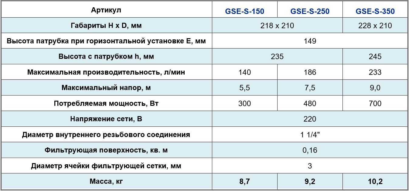 Погружной насос для фонтана GSE-S, 220В/0,3 кВт