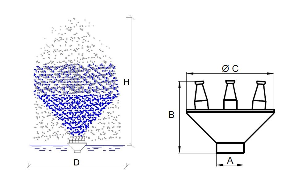 Насадка Spraying Сloud с несколькими распыляющими форсунками создает объемное водное облако (эффект тумана). Такая водная картина особенно приковывает взгляд в вечернее/ночное время суток, когда огни подсветки эффектно выделяют ее в пространстве. При использовании следует учитывать преобладающее направление ветра и оснащать фонтан системой автоматического наполнения воды во избежание осушения водоема.