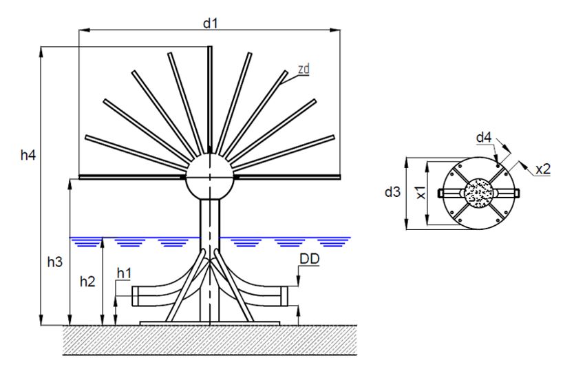 Фонтанная насадка Water hemisphere изготовлена из нержавеющей стали. Конструкция насадки имеет оригинальный вид и сама по себе похожа на арт-объект, что делает ее привлекательной, даже если в фонтан не подается вода. Водная картина в виде шара, которая достигается с помощью равномерно расположенных форсунок, создает роскошный визуальный эффект. Водная картина сферы и полусферы устойчива даже при достаточно сильном ветре.